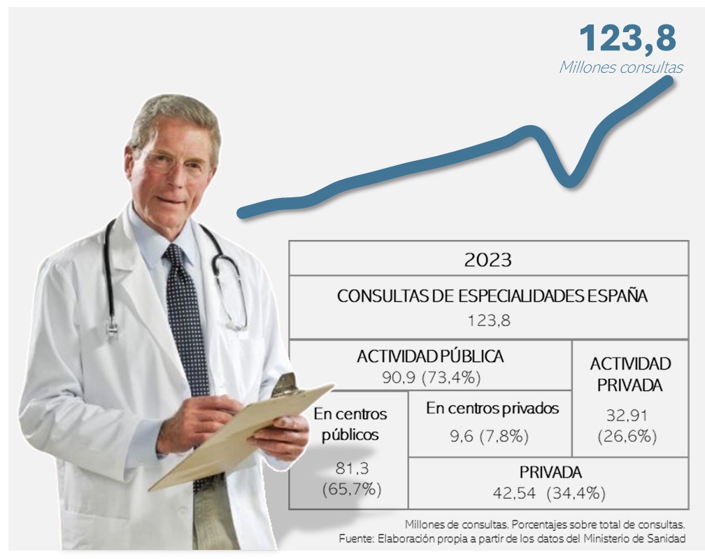 En 2023, España alcanzó la cifra récord de 123,8 millones de consultas de especialidades médicas. Una actividad que refleja la creciente presión sobre el sistema sanitario y que, al mismo tiempo, nos obliga a repensar cómo se organiza la atención entre lo público y lo privado.